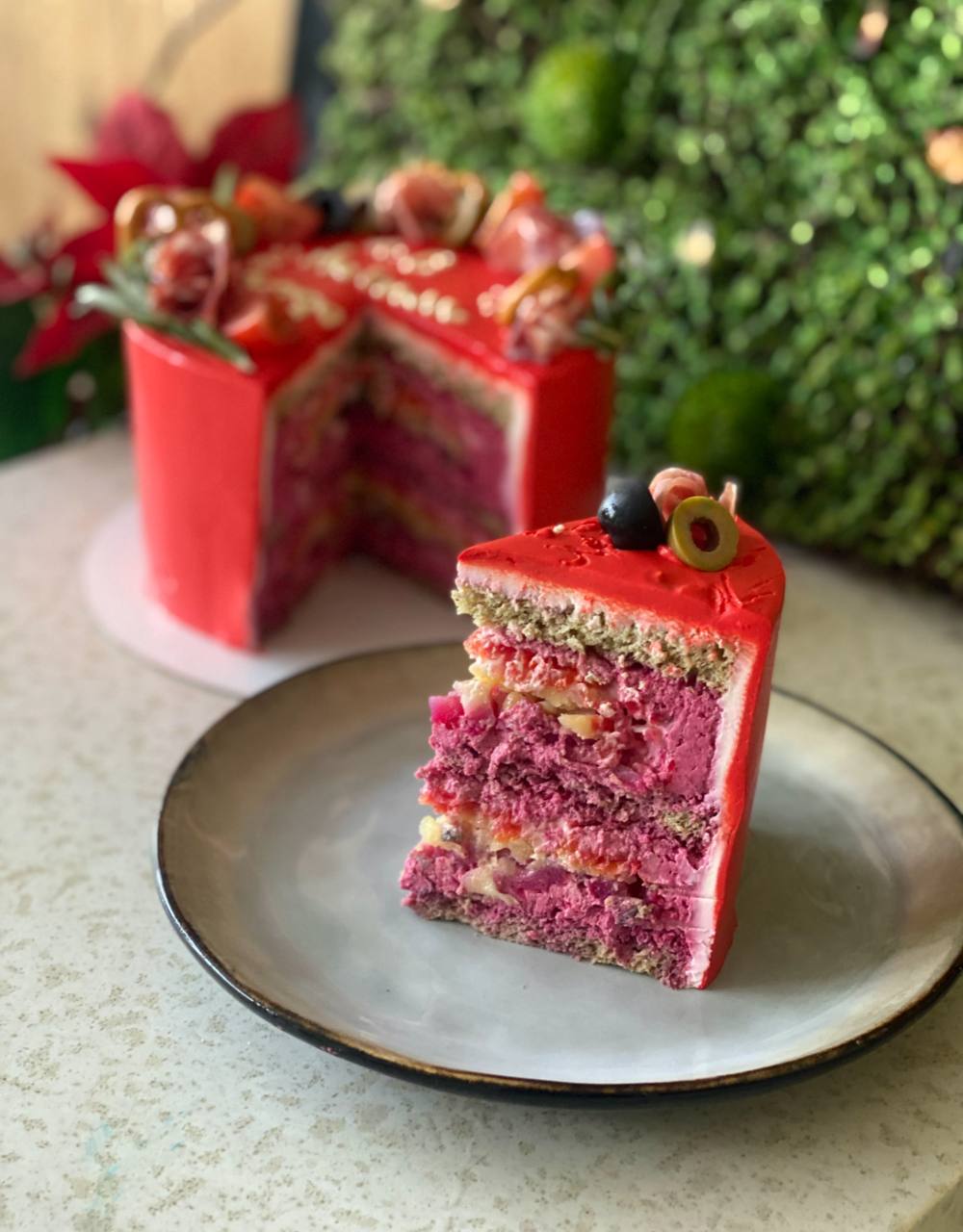 Сочные бисквиты, свекольный крем, сельдь, картофель, морковь. Пропитка с репчатым луком( можно без лука)😀