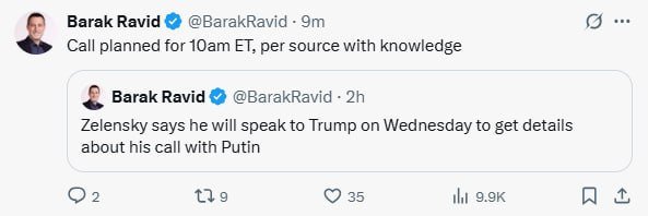 Трамп созвонится с Зеленским в 16:00 по Киевскому времени, сообщает журналист Axios Барак Равид.