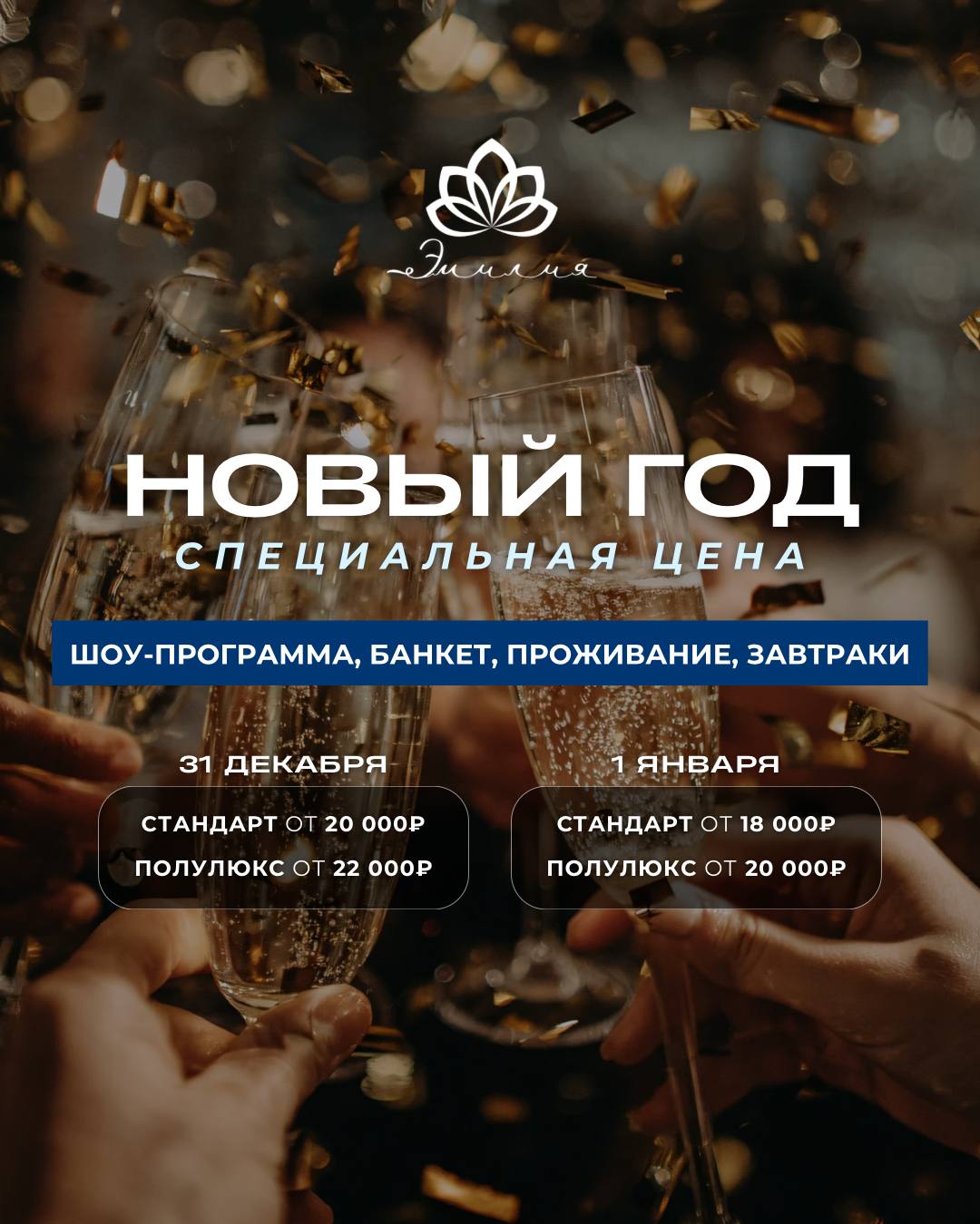 Всё включено по специальной цене: проживание, шоу-программа, Новогодний банкет, завтраки.