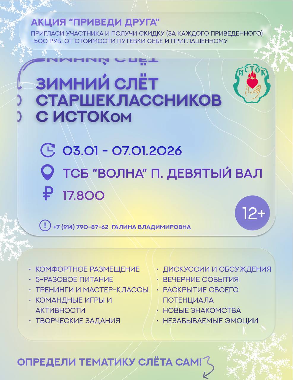 Слет пройдет с 3 по 7 января, стоимость участия составляет 17 800 рублей.