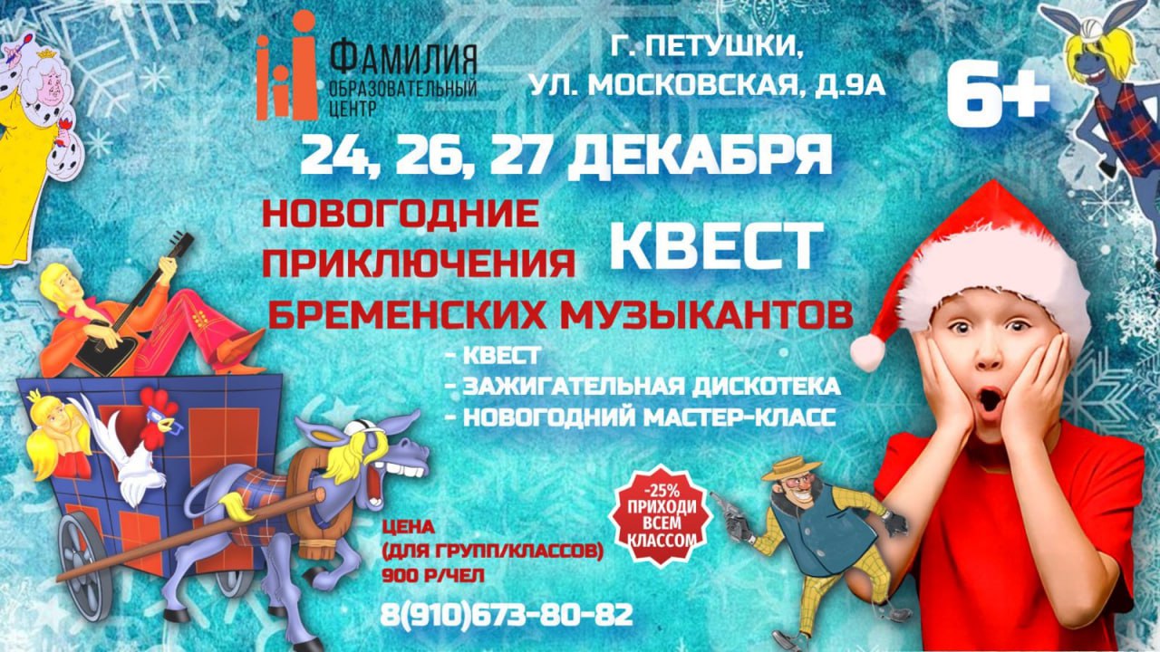 Новый год не за горами, поэтому уже сейчас образовательный центр «Фамилия» приглашает забронировать место для своего класса на квест «Новогодние приключения бременских музыкантов» для ребят 1-5 классов! 🎄
