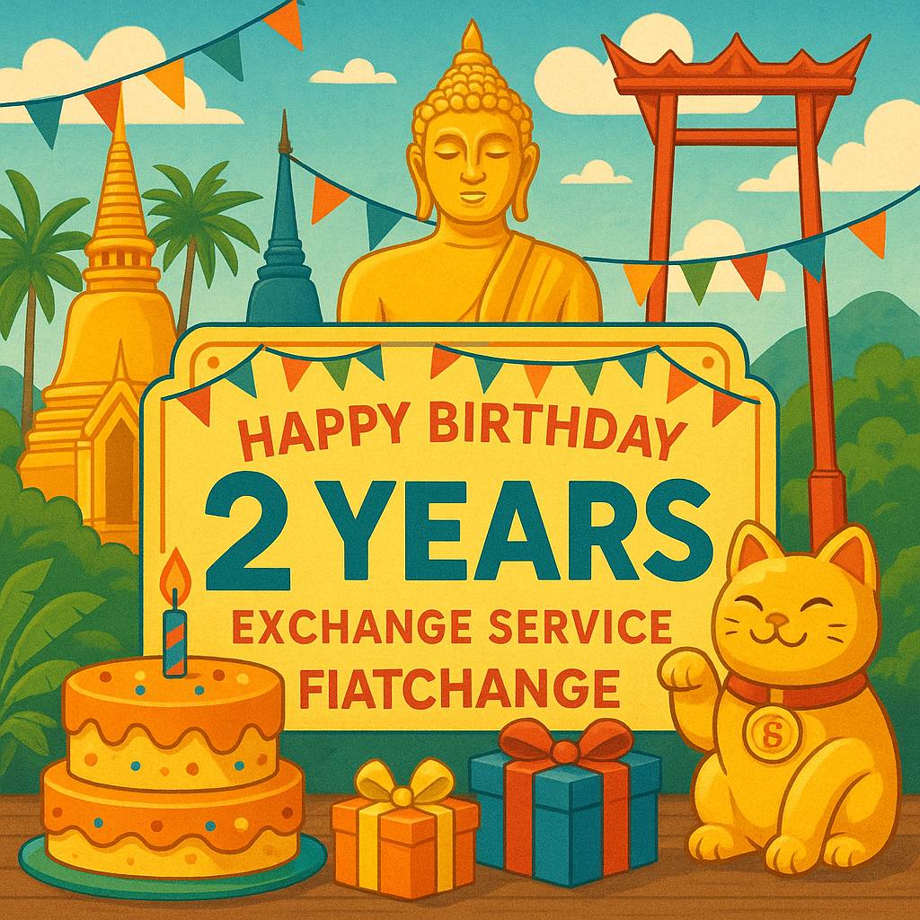 Сегодня мы празднуем наш 2-й день рождения, и хотим выразить огромную благодарность каждому из вас — нашим клиентам, партнёрам и друзьям, кто доверяет FIATCHANGE и выбирает наш сервис обмена валют в Таиланде.