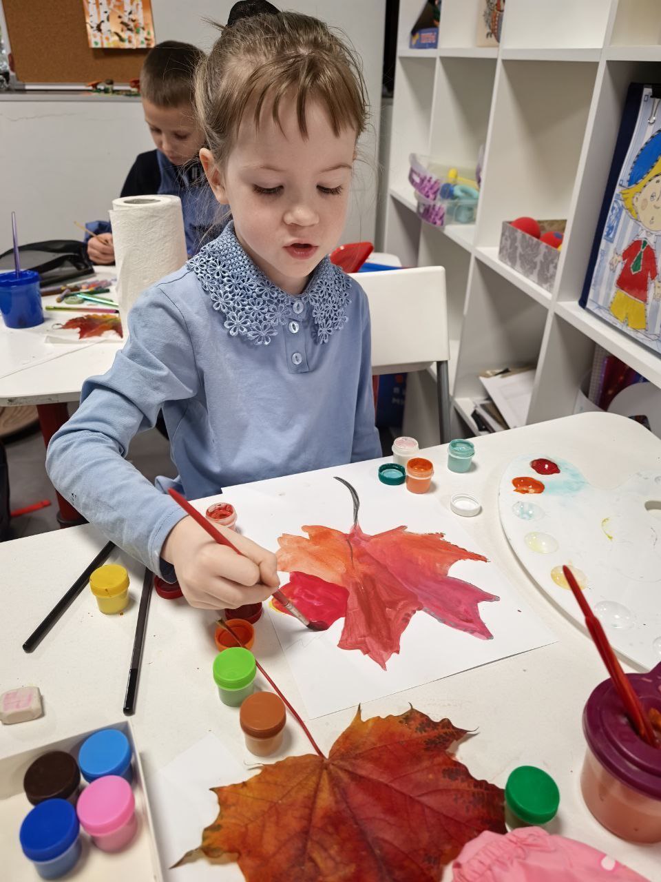 Также развивали глаз, смотря на натуру. Искали блики, теневые стороны. Изучали строение осенних листьев и их необыкновенную расцветку.