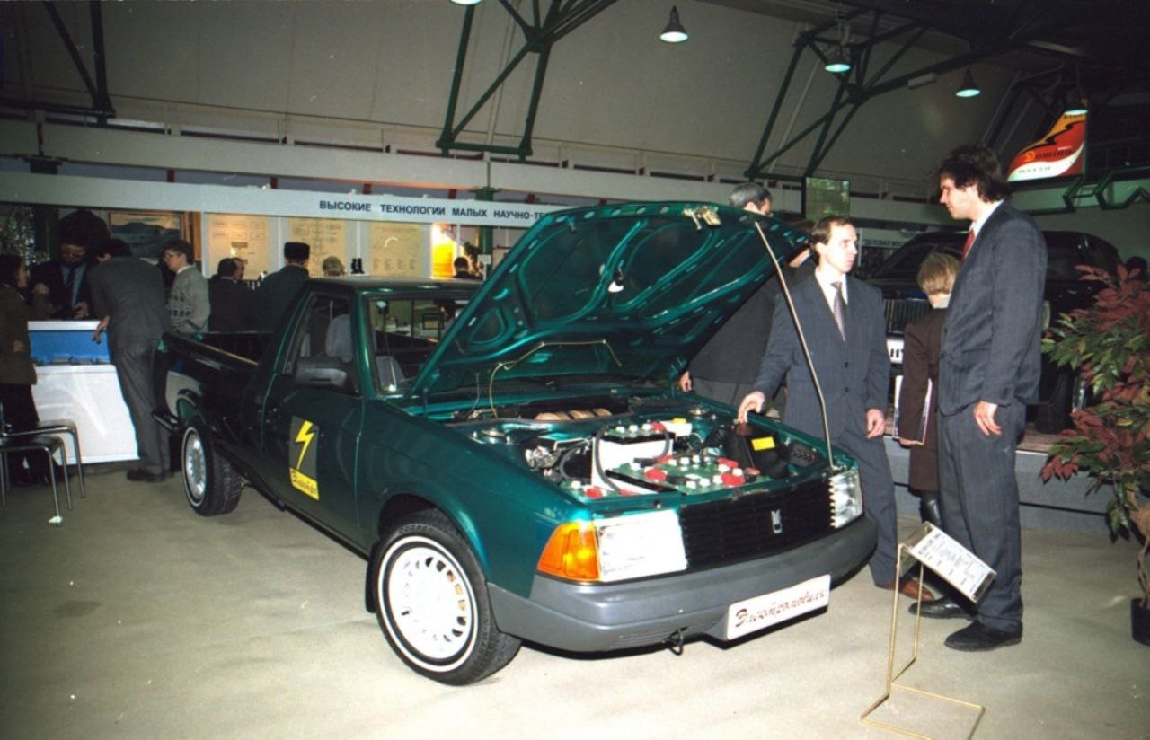 1997 год. Электромобиль АЗЛК-2335Е1 на автосалоне MIMS-97. Э...