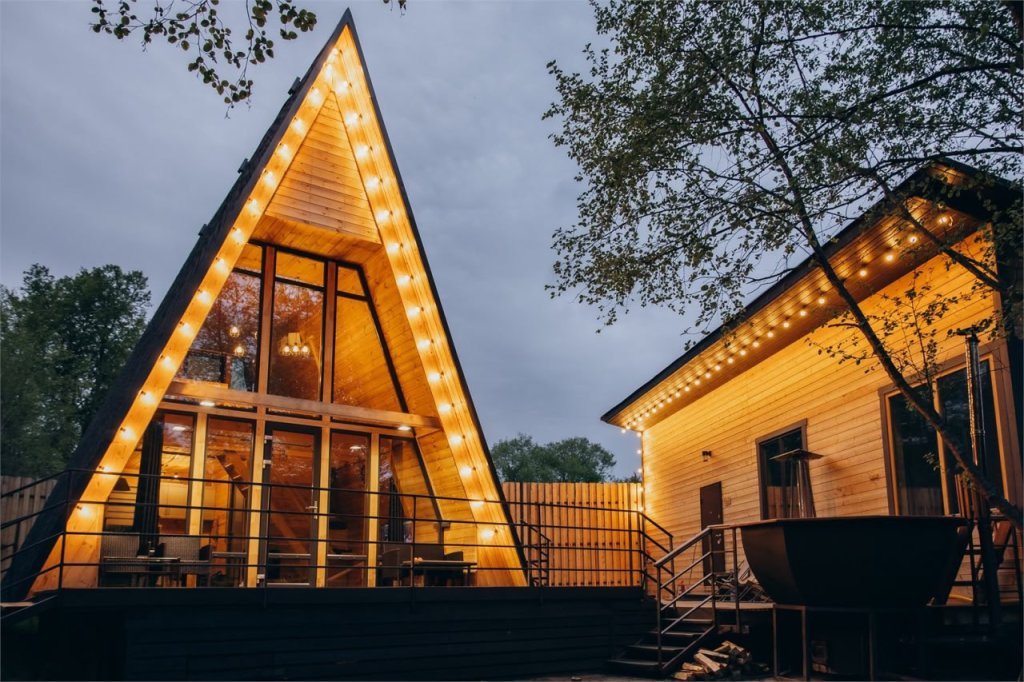 Гостям предложено проживание в уютных домиках, оборудованных всем необходимым для комфортного отдыха.