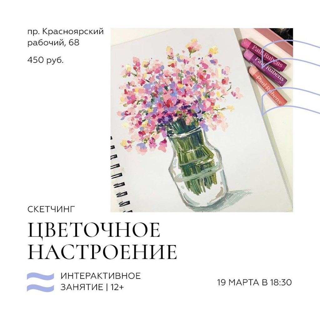 ✔️Уже в среду создаем иллюстрацию «Цветочное настроение» в технике скетчинг. Занятие пройдет 19 марта в 18:30. Билеты по ссылке. Стоимость — 450 рублей.