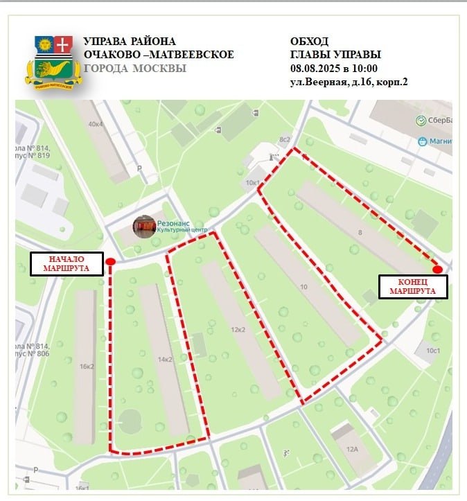 📅 8 августа пройдёт обход главы управы района Очаково-Матвее...