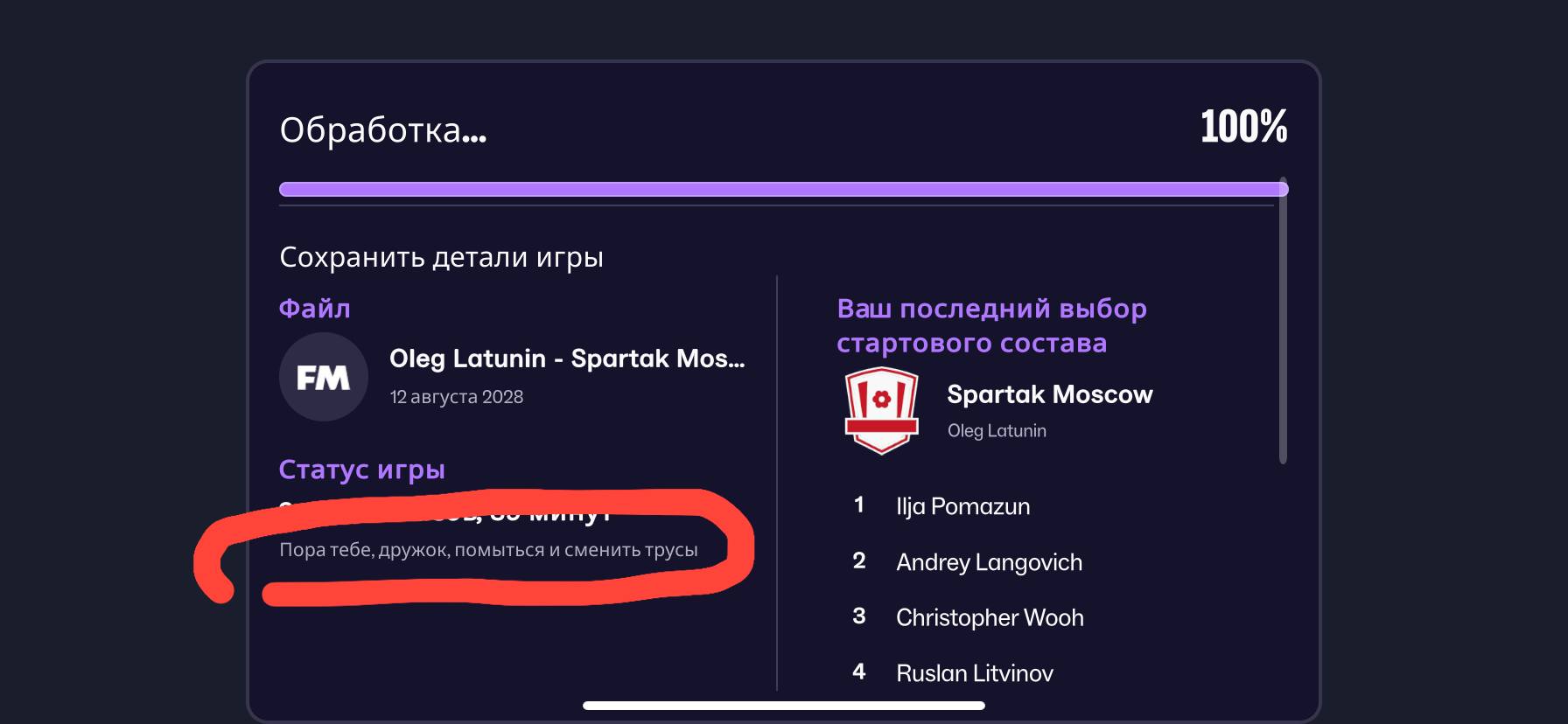 Спасибо football manager 2026, что ты не просто багованное говно, а еще и ироничное