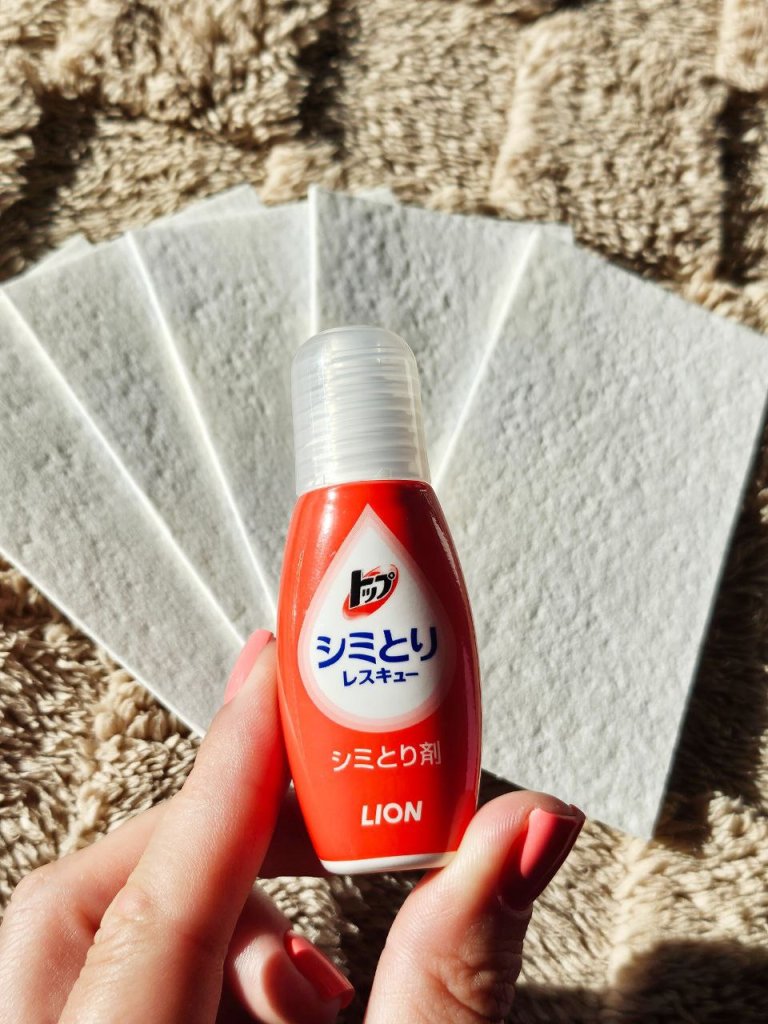 Мой must-have для неуклюжих — японский пятновыводитель. Купила его, забыла, а недавно он так меня выручил, что теперь всегда в сумочке👜