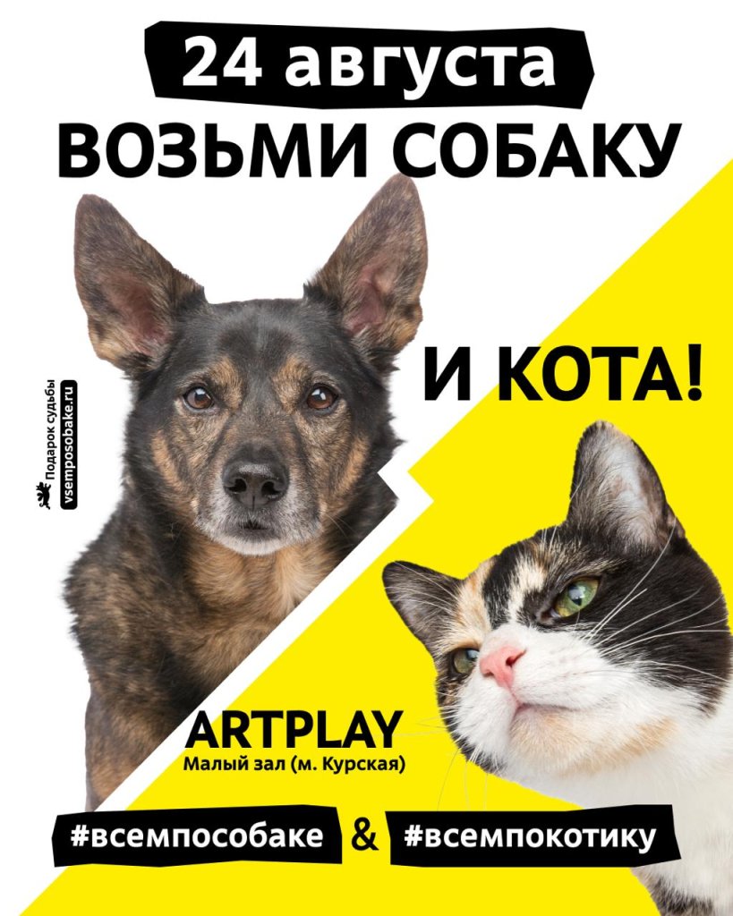 В Москве, в ARTPLAY 24 августа пройдут сразу две выставки-пристройства: #всемпокотику и #всемпособаке!