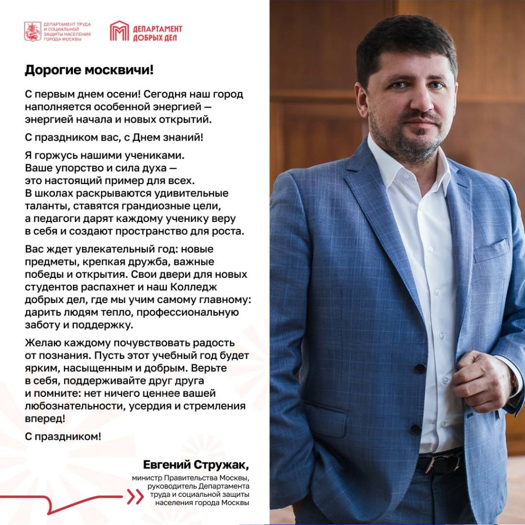 С Днём знаний москвичей поздравил руководитель Департамента труда и социальной защиты населения Евгений Стружак!