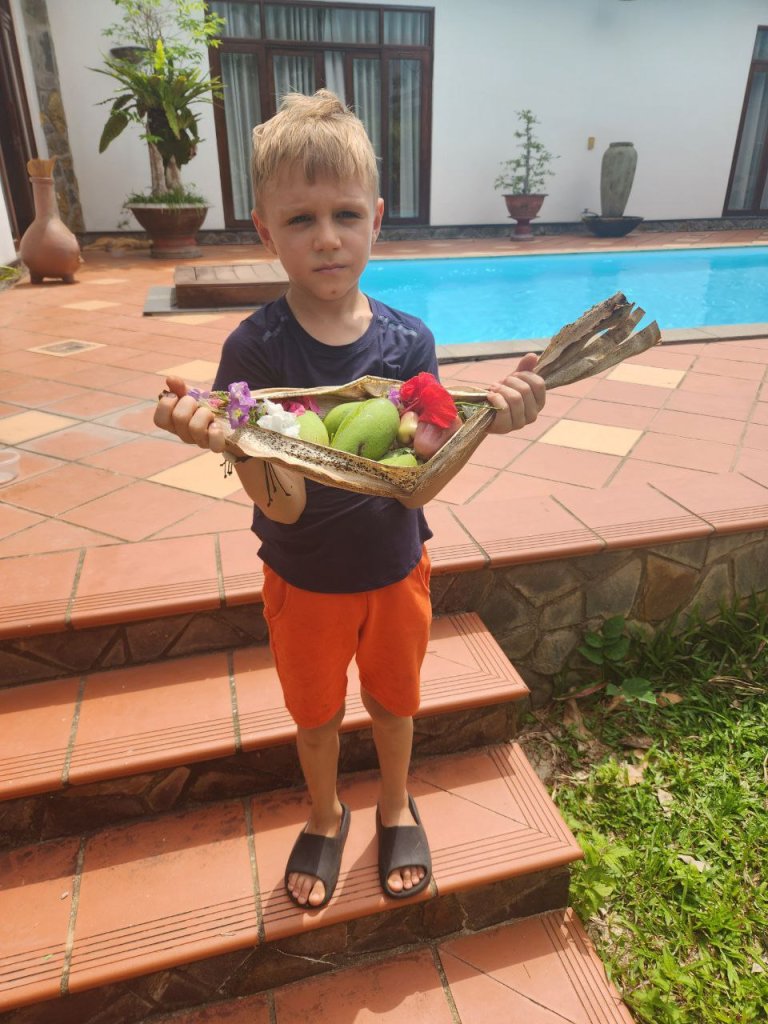 А детишки готовили какую-то пуджу из найденных на земле плодов, листьев и цветов. Большая радость, что дети растут в окружении здоровых трезвых людей, стремящихся к духовному развитию👍