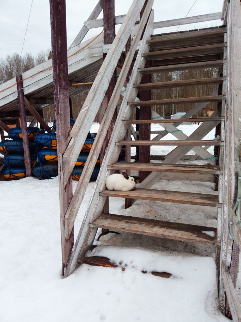 Кролик нашел уютное местечко: когда горка растаяла — это самое тихое место )))