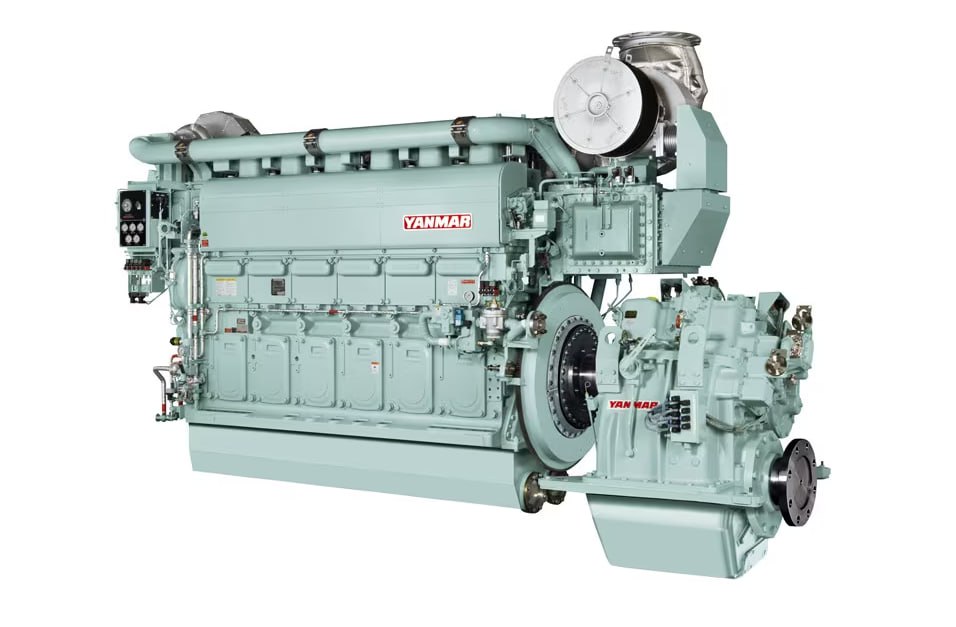 Опять эти Янмаровцы что-то придумали. Посмотри на картинку, если не считать редуктор, то на этом 6-ти цилиндровом «дураке» установлено еще и два турбонагнетателя. Почему два? Почему бы не поставить один, но больше? Да потому что установлены они последовательно…