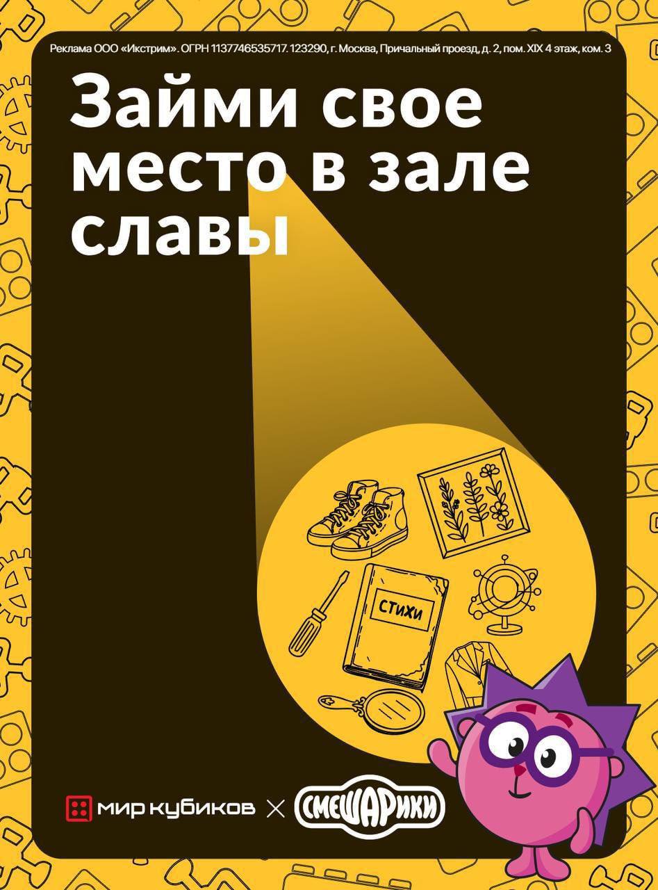 Постройте из кубиков предмет, который идеально описывает одного из Смешариков или нарисуйте арт по вселенной Смешариков! Все подробности тут — https://lk.riki.team/ZFhNvx