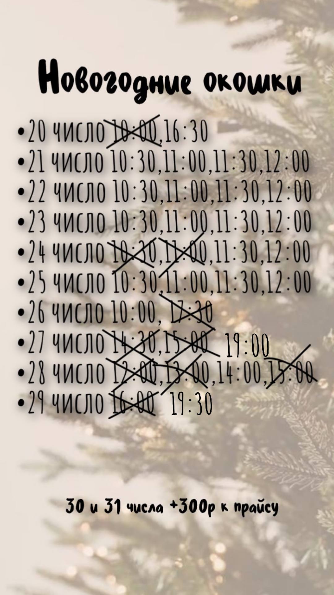 перед новым годом уже почти нет окон, но с 20 по 25 число, я могу принимать и позже ♥️🧸