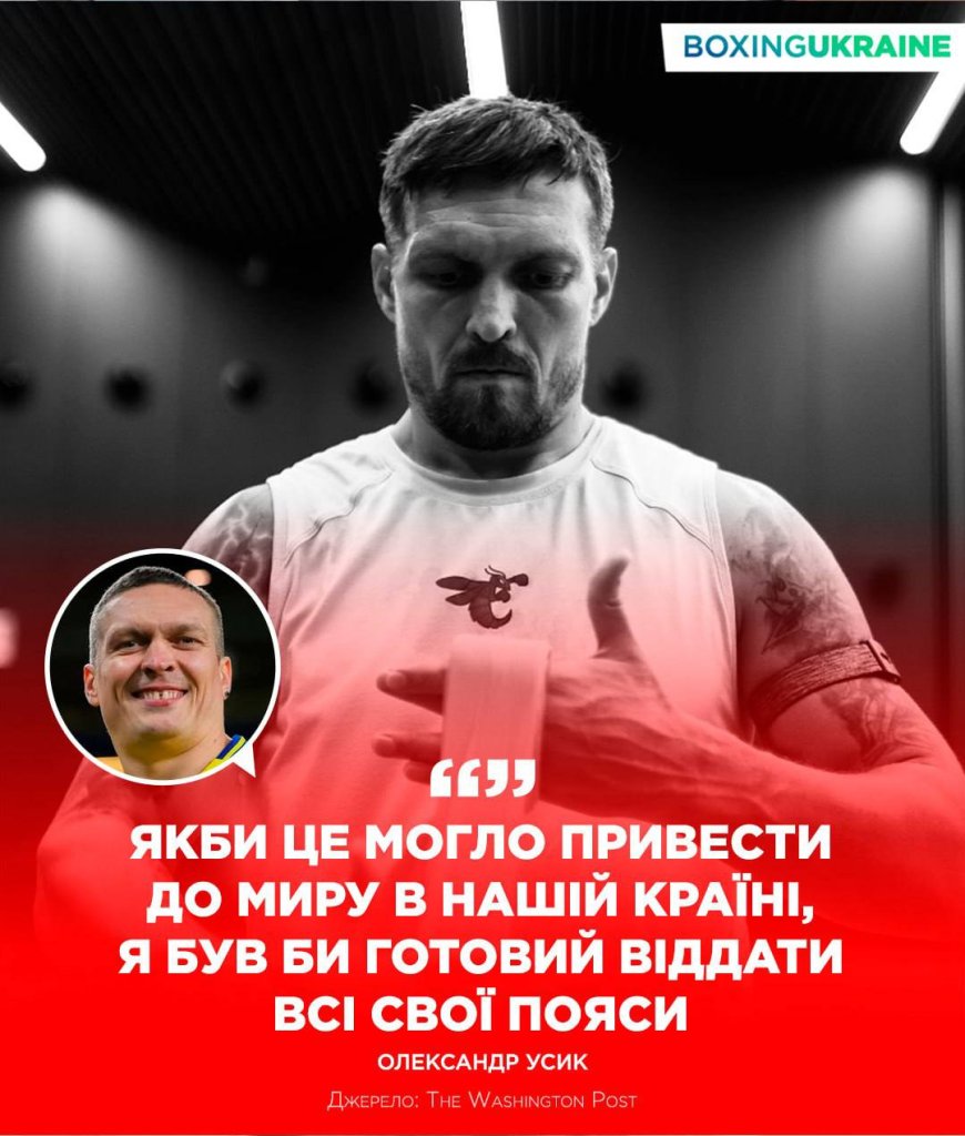 🔥 «Знаєте, питання не в тому, чи заслуговує він його. Якби це могло привести до миру в нашій країні, я був би готовий віддати всі свої пояси», — сказав Усик