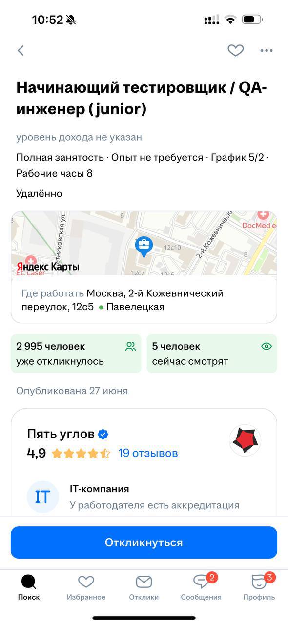 Привет 👋 на связи Володя! Выложили тут вакансию джуниор тес...